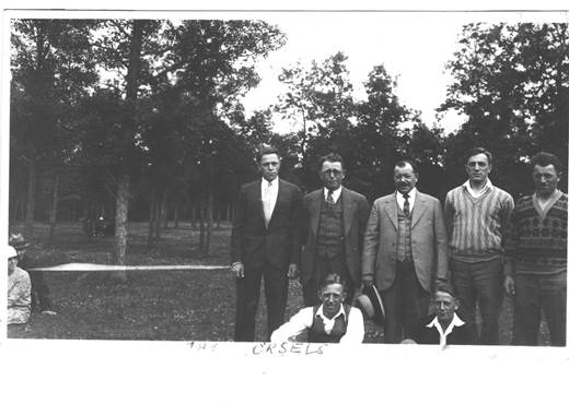 This photograph of Adam, Sr (Panama hat, far left) along with the rest of the family, so we know he was present at least at one time probably around 1918 or 1919. In total, there are 36 individuals in this photo. The reader will also note two older people at the right side of the picture, in black. It is believed that these are Grandfather and Grandmother Koch, parents of Karolina who is Adam Sr’s wife. She is probably the woman standing to the left of Adam Sr, in the really nice coat and hat. There are Adam's sons also in this picture but the rest remain unidentified. Adam Sr, five of his sons and probably Georg Adam Koch are in this picture. So, who are five other men who aren't in the above picture (#1)? Judging by the movement and expressions, the children have grown tired of this rather traumatic scene.