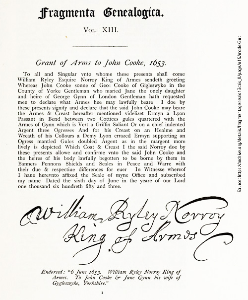 There is a very interesting connection at where our ancestor, John Ginn of Anstey d. 1694 who married Mary Gill. Mary Gill had a pedigree, that is she came from a gentry family belonging to an estate known as Wyddiall, and her ancestors were most interesting indeed. The important line is the connection back to Sir John Perient. (See below) Altogether fascinating reading.