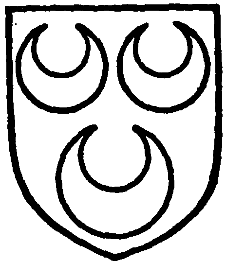 Sir John Peryent's coat of arms, described as "gules, three crescents argent". That means the crest has three silver crescents against a red background. (British History Online) You can see a close representation here which includes some general family information.