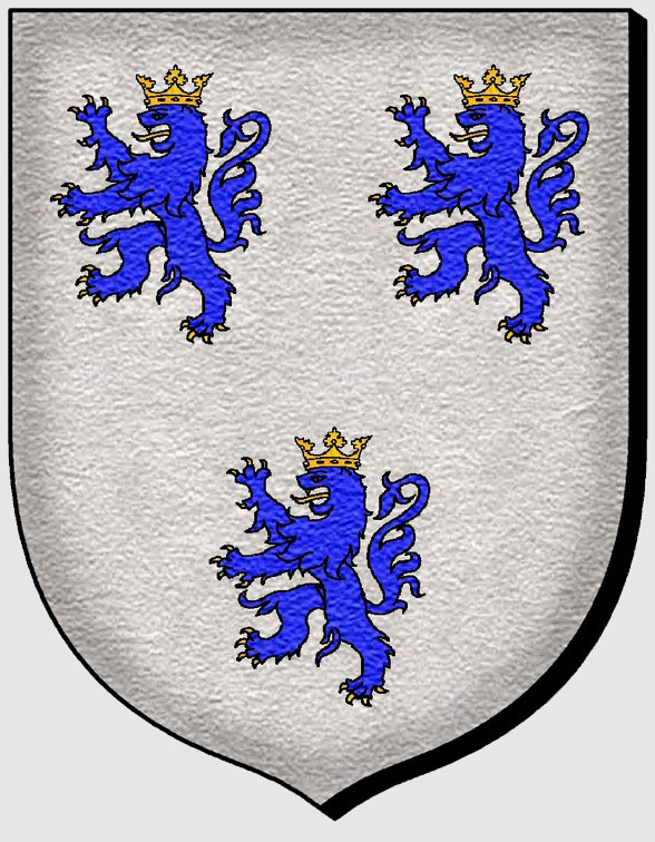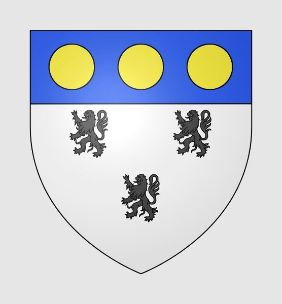 D'argent à trois lions de sable, armés et lampassés de gueules, couronnés d'or. Note: There are numerous branches of this family.